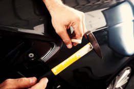 A técnica “martelinho de ouro” consiste em eliminar amassados na superfície de um veículo sem o uso de pinturas. Serve para reparo de pequenos amassados, como arranhões, batidasleves ou danos pela chuva de granizo.